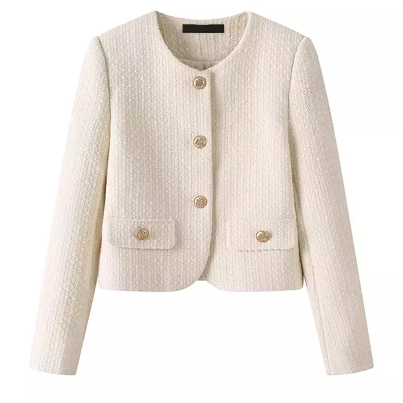 Design Clássico e Chique: Com um corte impecável e decote redondo discreto, o Casaco Chiara exala elegância. Sua silhueta cropped é moderna e super versátil, ideal para compor looks diversos.